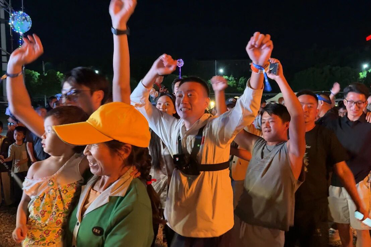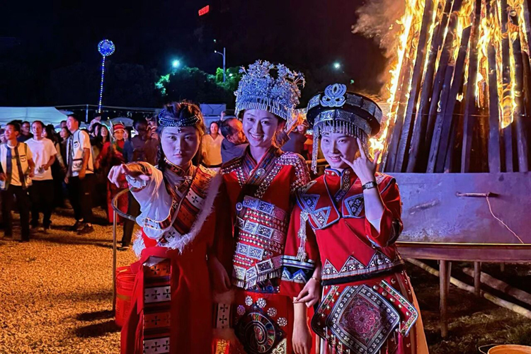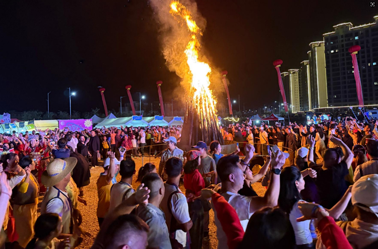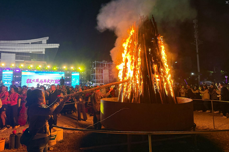 隨著大三弦的餘韻仍在夜空中回蕩,場地中央燃起溫暖的篝火。 松木劈啪作響,橙紅色火苗竄起丈餘高,將大家的臉龐映得暖意融融。 跑者們手拉手圍成圓圈,踏著節奏盡情起舞。 火光搖曳中,賽前的緊張漸漸消散,跑者與石林在這熱烈的篝火舞會中深情相擁。 來自湖北的陳先生感慨道:“以往參賽都是一個人,今天和大家手拉手唱歌跳舞,交到了很多新朋友,可以一起分享比賽中的趣事,這種感覺太棒了!