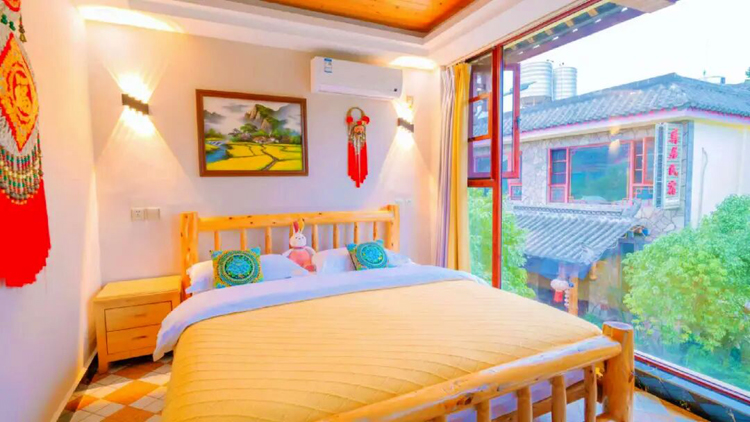 樸愫客棧則以在地文化為特色,彝族風情貫穿其中,走出差异化路徑。 走進客棧,一股濃郁的彝族風情撲面而來,牆面嵌著本地特有的青灰石頭,房間裏點綴著彝族撒尼人手工刺繡,樓頂露天花園是老闆一磚一瓦親手打造的,餐桌上常有馬肉、雲南乳餅等特色美食,還有豐富的火把節、“四季村晚”等民宿活動,讓客人深度體驗石林文化。 這“一靜一動”“一簡一樸”的互補,正是石林旅居業態豐富性的縮影。