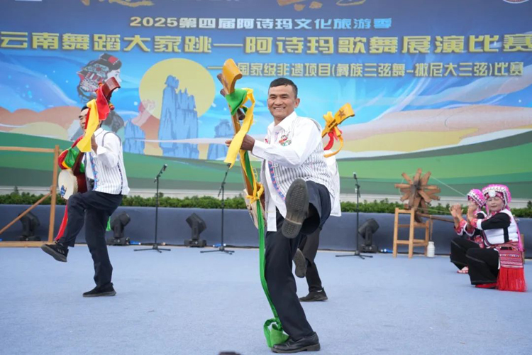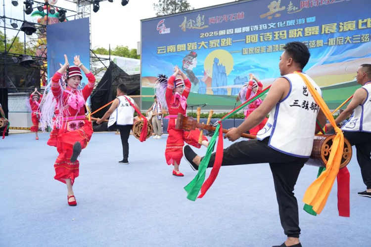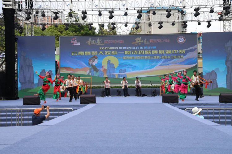 5月2日下午,“雲南舞蹈大家跳”—“彝族三弦舞-撒尼大三弦”比賽在縣城雙龍廣場拉開2025第四届石林阿詩瑪文化旅遊季阿詩瑪歌舞展演比賽序幕。