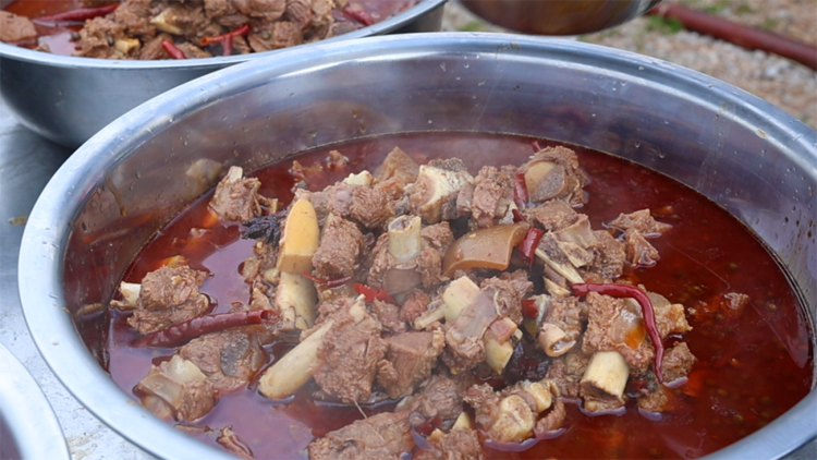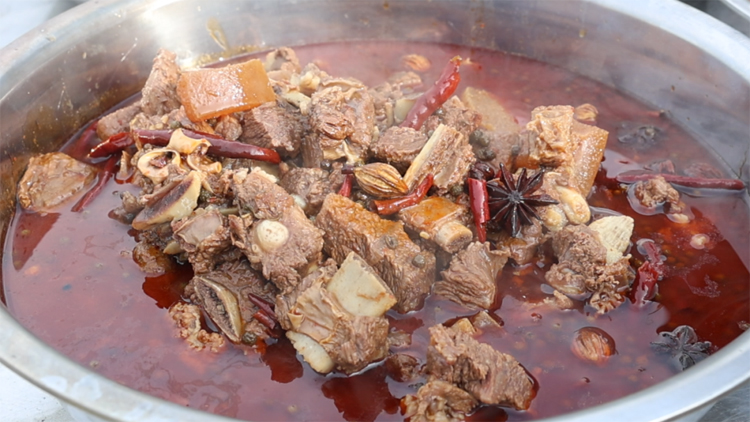 北大村的牛肉,新鮮得仿佛還帶著山間的清風。 “前店後廠”,現宰現烹,清湯鮮美如初春溪水,紅燒醇厚如秋日山霧。 牛肉凉片,肉質緊實,越嚼越香; 牛乾巴香酥,小炒牛肉鍋氣十足——每一口,都是大地的饋贈。