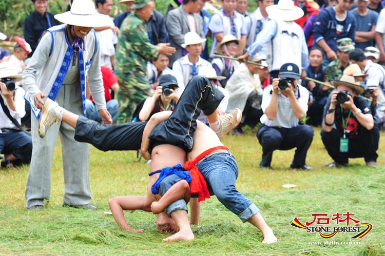 世代居住在石林的彝族撒尼人,個個都是天生的歌唱家、舞蹈家,他們勞作是歌、生活是舞,在奇峰異石之間,在彩雲深處,創造了與石林一樣令人驚奇、感動,舉世聞名的阿詩瑪民族文化:長詩《阿詩瑪》成為中國少數民族敘事長詩經典,首批國家級非物質文化遺產,被譯為20多種文字在世界多個國家廣泛傳播;電影《阿詩瑪》享譽海內外;舞劇《阿詩瑪》成為二十世紀中國經典舞蹈;《遠方的客人請你留下來》唱響神州大地,被定為雲南旅遊代表歌曲;一年一度的彝族傳統火把節被評為中國最具發展潛力的十大節慶活動之一……,被譽為中國著名的“歌舞之鄉”、“摔跤之鄉”和“現代民間繪畫之鄉”。